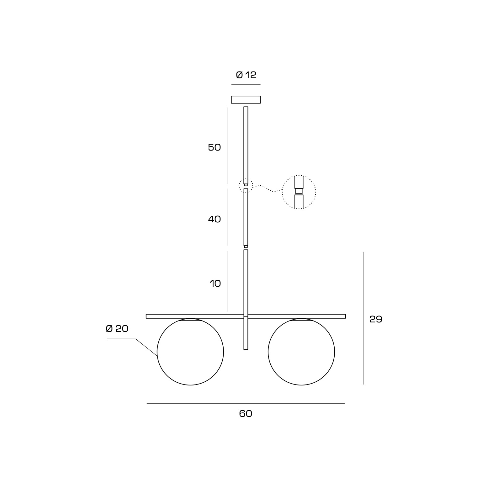 2-flammige Pendelleuchte aus milchweißem Glas. Schwarz lackierte Fassung. Nutzung der cm 40 und cm 50 Röhren möglich.